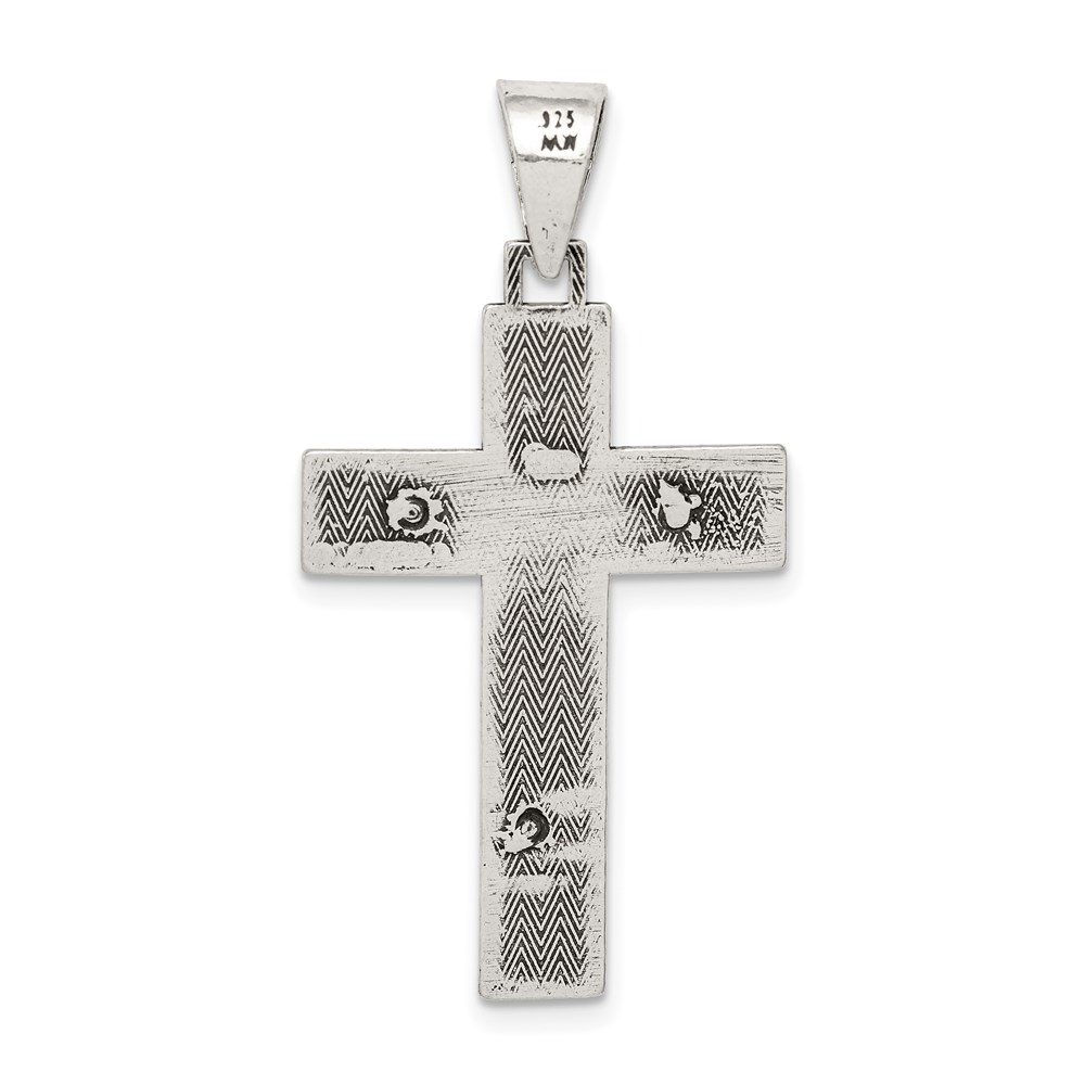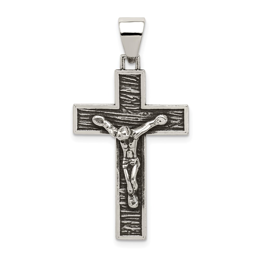 Sterling Silver Antiqued Box Cross Crucifix Pendant