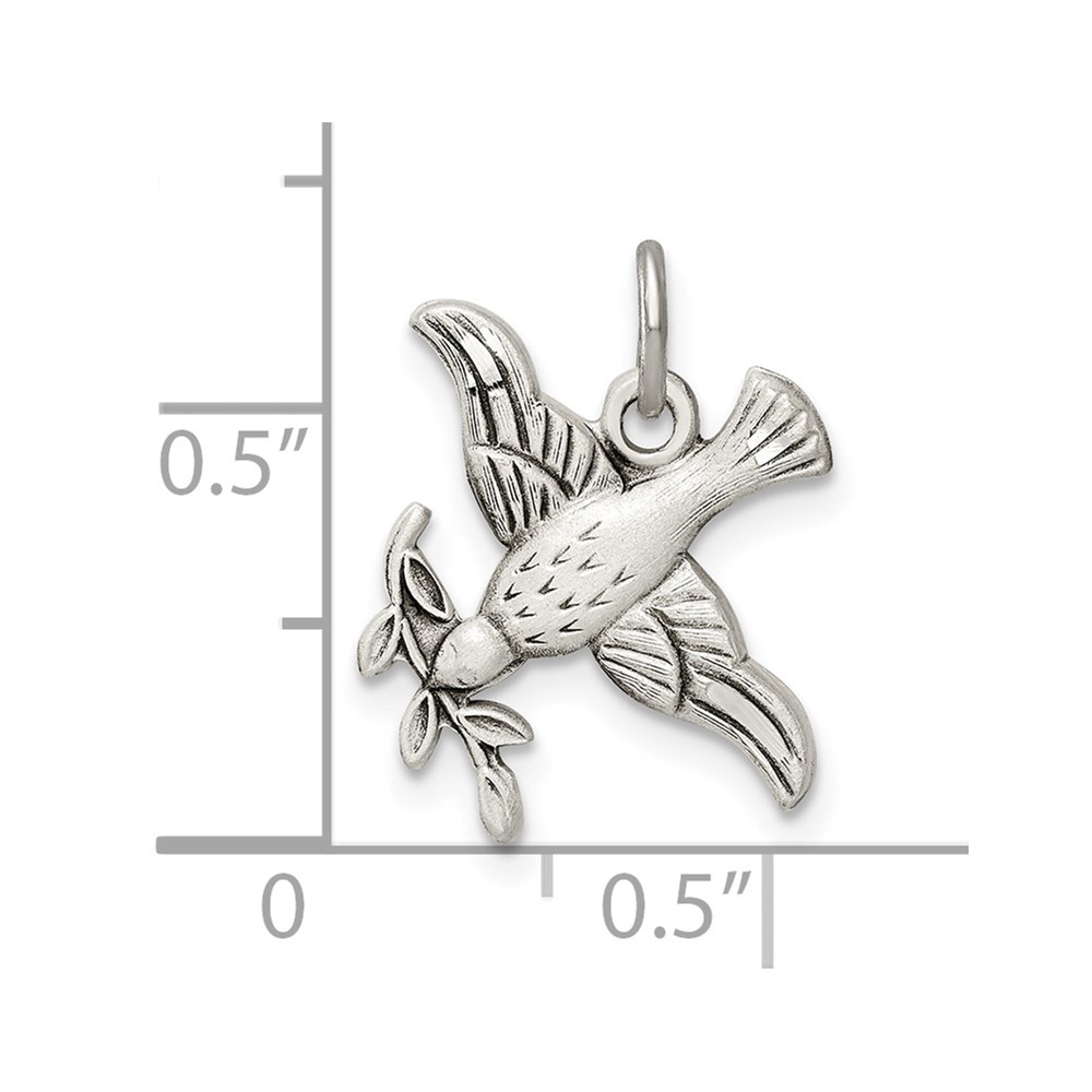 Sterling Silver Antiqued Diamond-Cut Bird Pendant