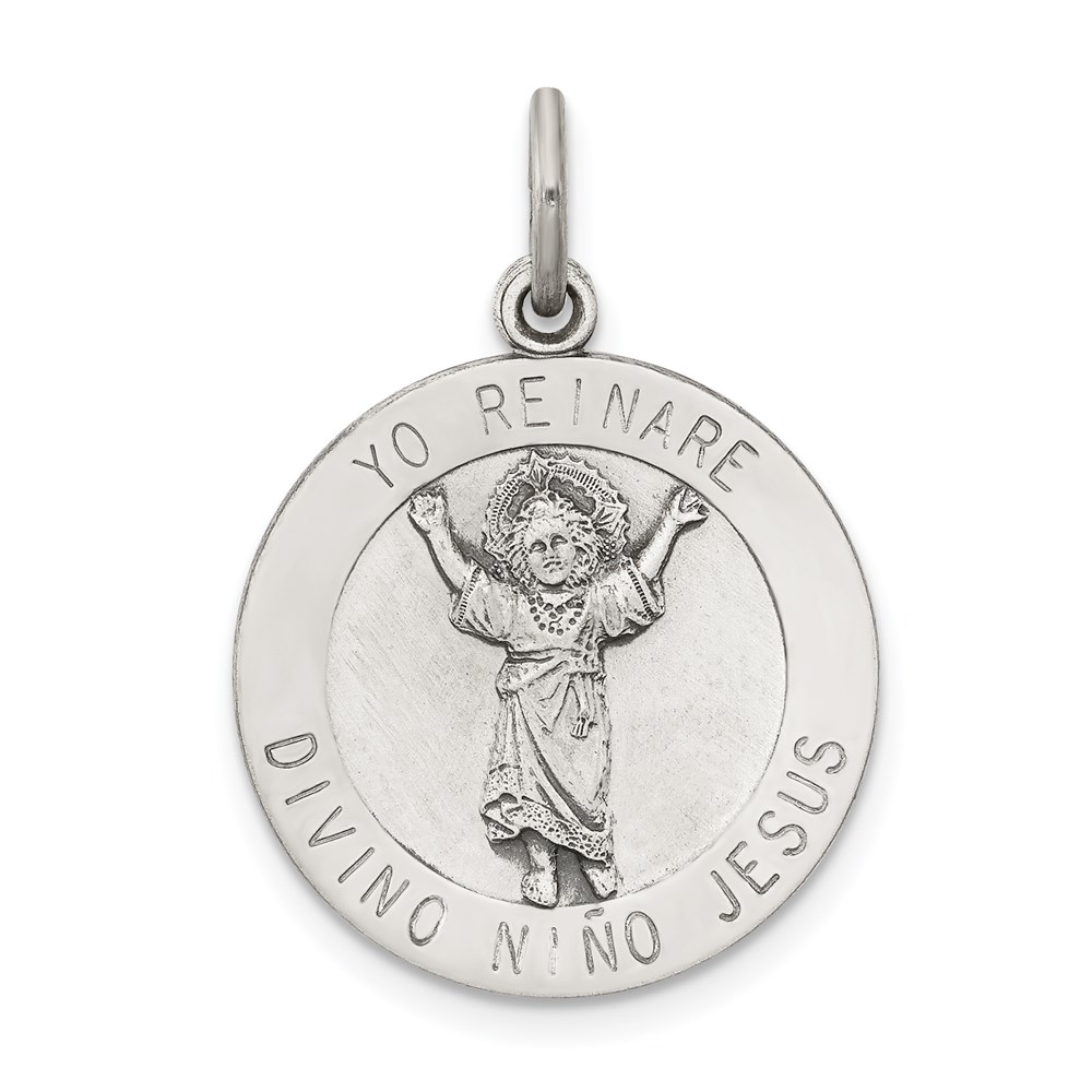Sterling Silver Antiqued Divino Nino Medal (Divine Infant Jesus)