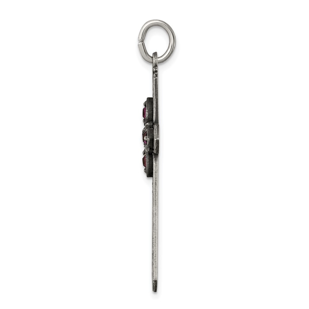Sterling Silver Antiqued February Glass Birthstone Cross Pendant