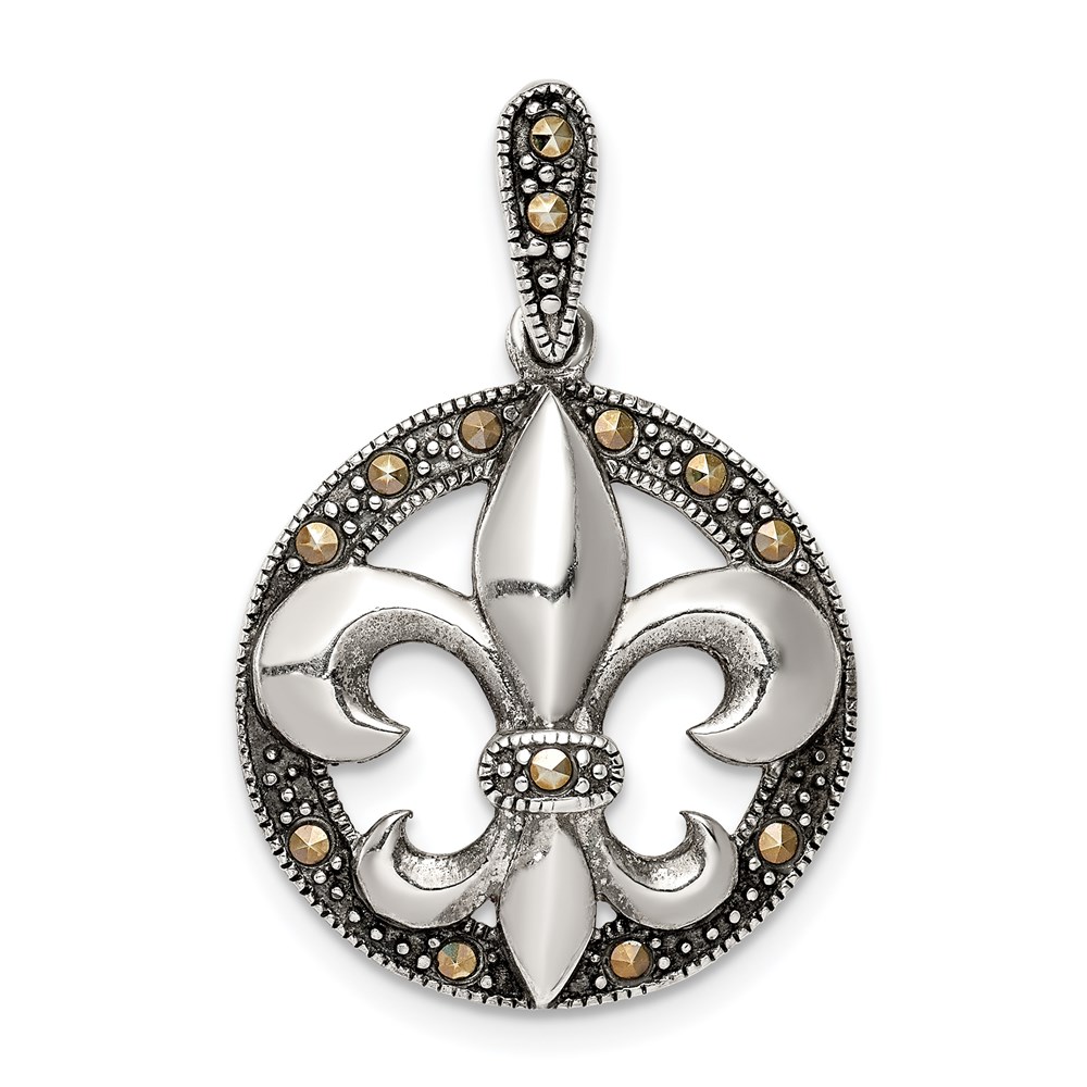 Sterling Silver Antiqued Marcasite Fleur De Lis Pendant