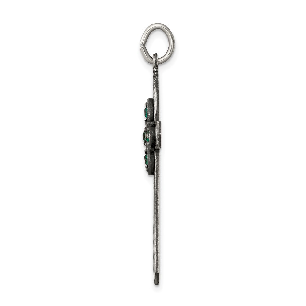 Sterling Silver Antiqued May Glass Birthstone Cross Pendant