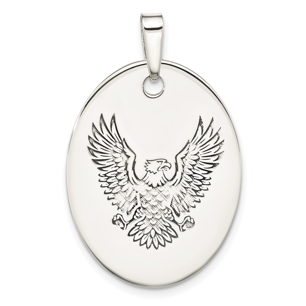 Sterling Silver Antiqued Polished Eagle Oval Pendant