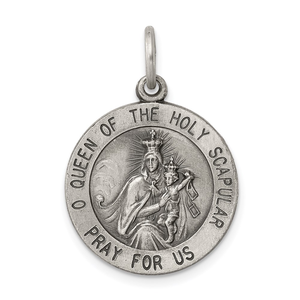 Sterling Silver Antiqued Queen of the Holy Scapular Medal