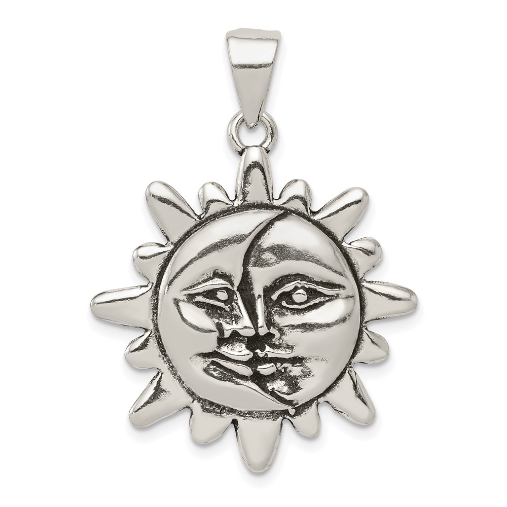 Sterling Silver Antiqued Sun & Half Moon Face Pendant