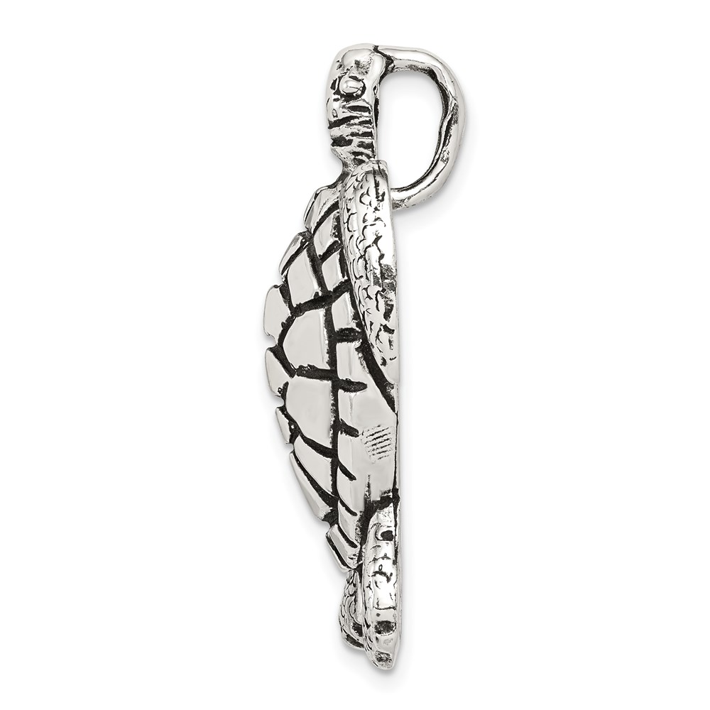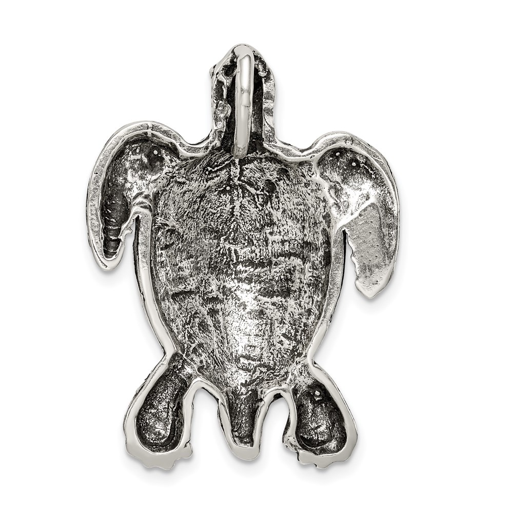 Sterling Silver Antiqued & Textured Turtle Chain Slide Pendant