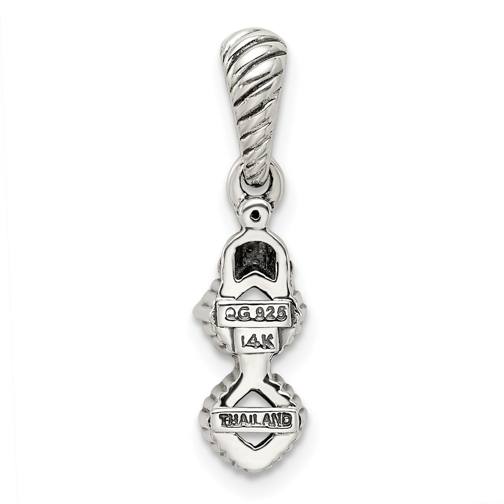 Sterling Silver Antiqued w/14k 2-stone w/Diamond Mothers Pendant Semi-Mount