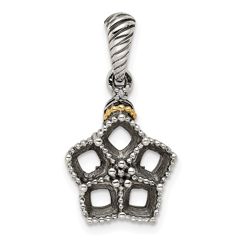 Sterling Silver Antiqued w/14k 5-stone w/Diamond Mothers Pendant Semi-Mount
