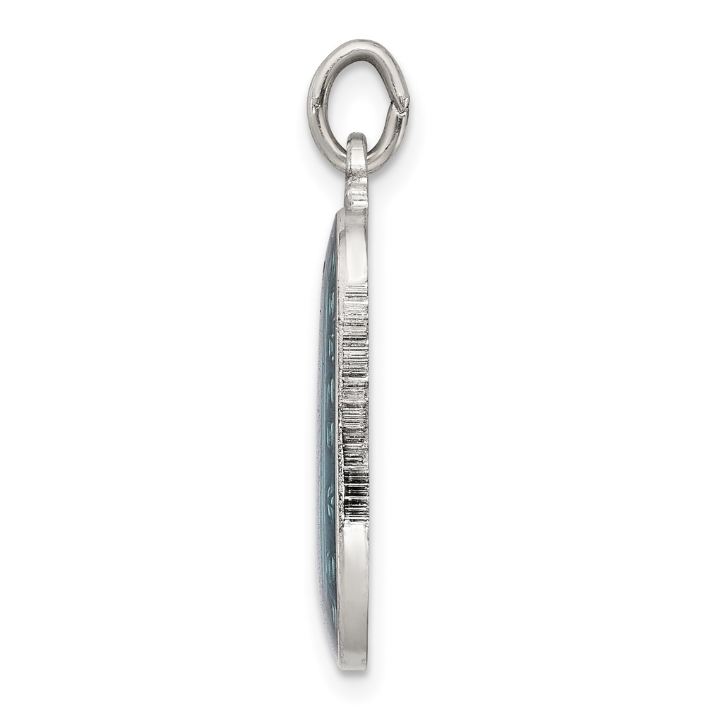 Sterling Silver Blue Enamel Square St. Christopher Medal Pendant