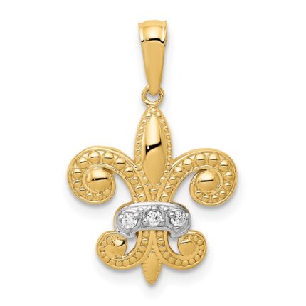 Be the first to review “Sterling Silver CZ Fleur de Lis w/ Flash Gold-Plated Chain Slide Pendant” Cancel reply