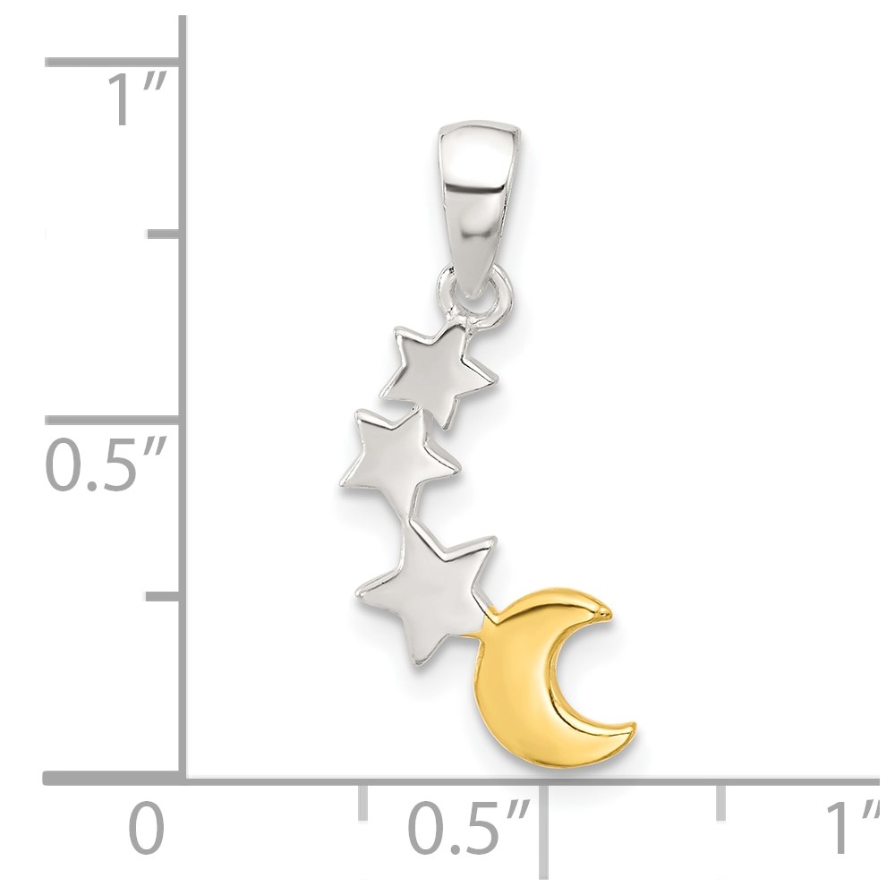 Sterling Silver E-Coat and Gold-tone Star and Moon Pendant