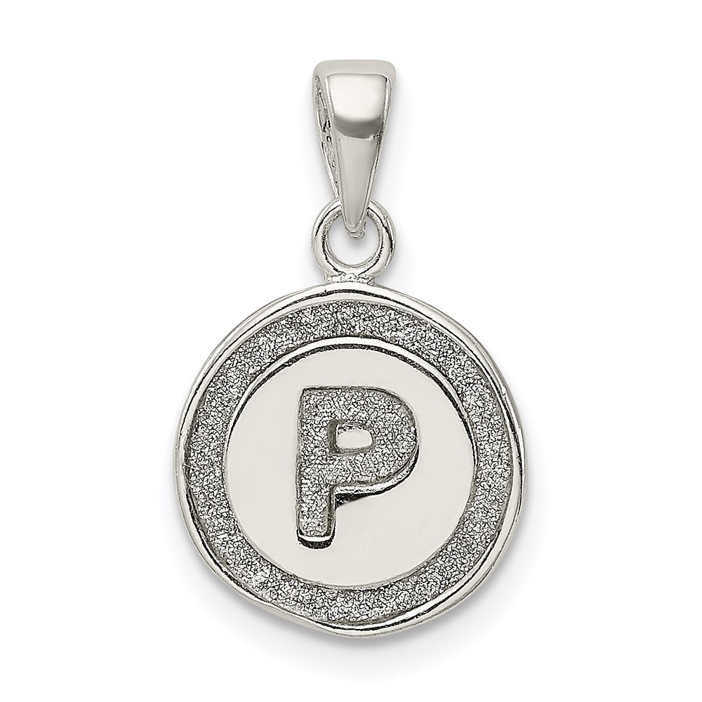 Sterling Silver Glitter Enamel Letter P Initial Circle Pendant