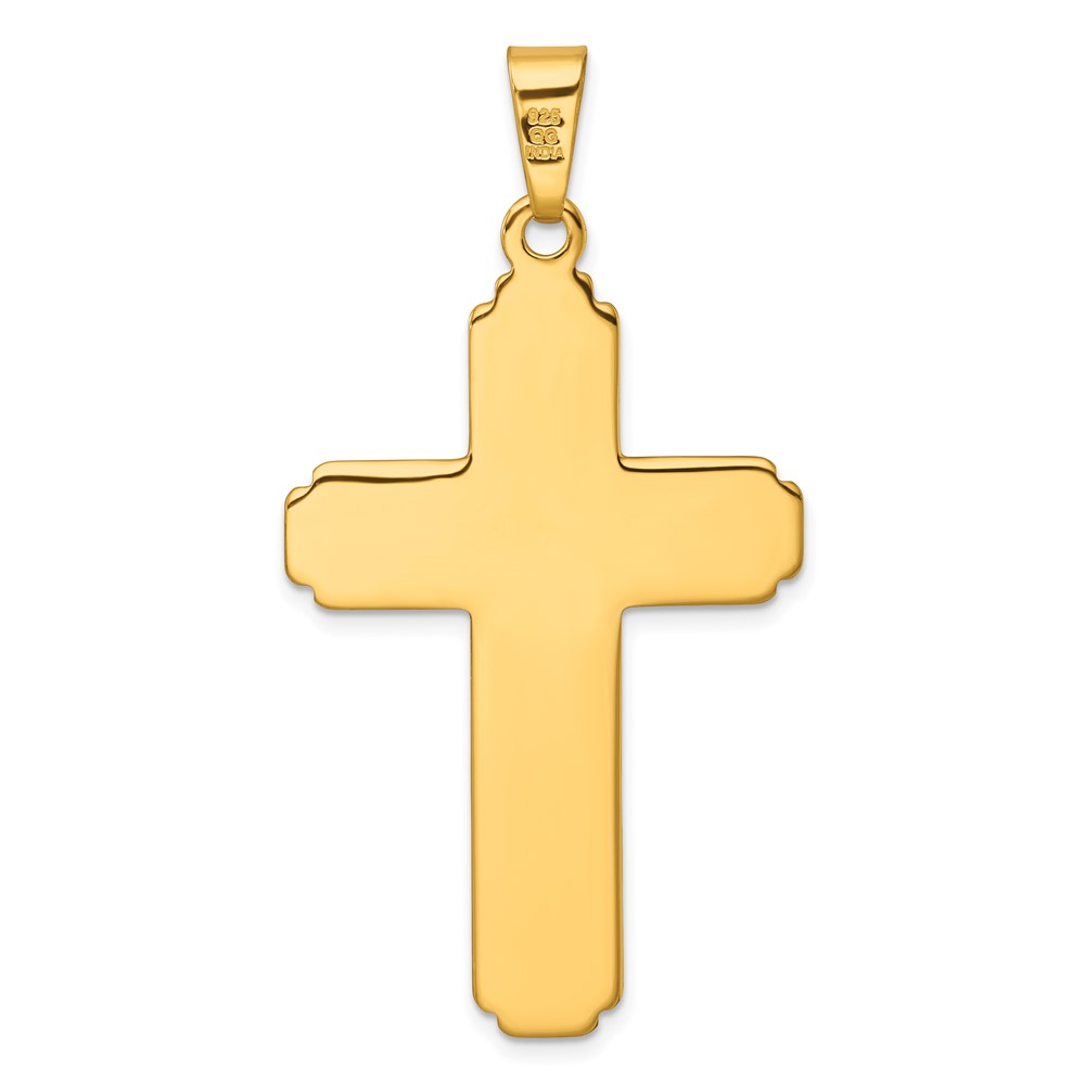 Sterling Silver Gold-tone Polished and Grooved Cross Pendant