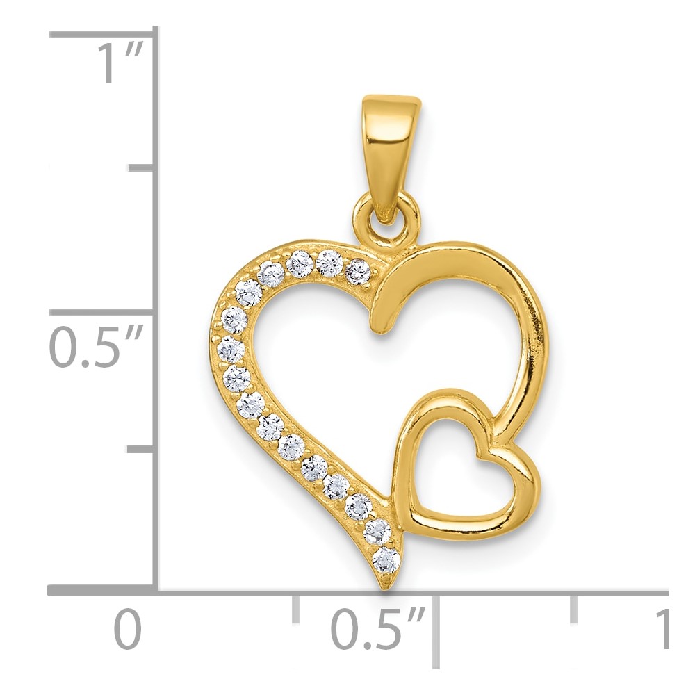 Sterling Silver Gold-tone Polished CZ Large Heart with Small Heart Pendant