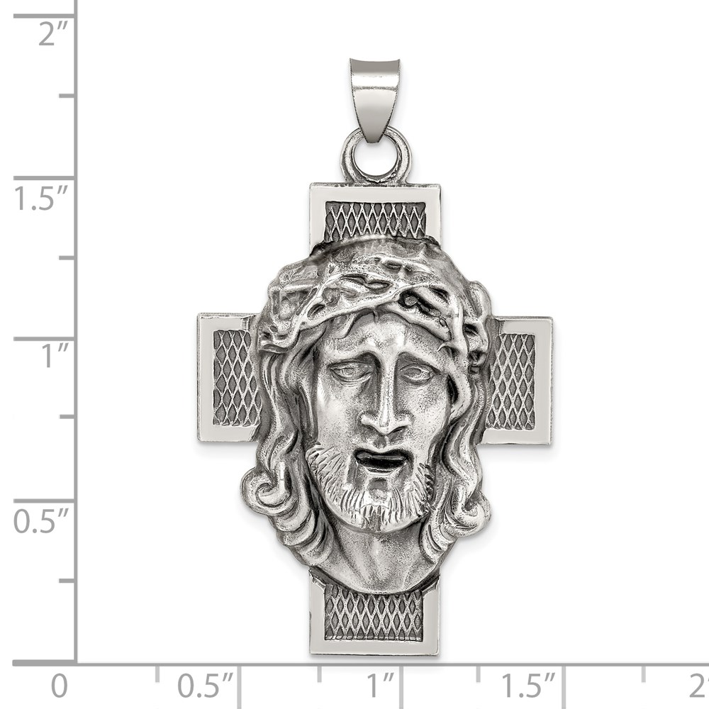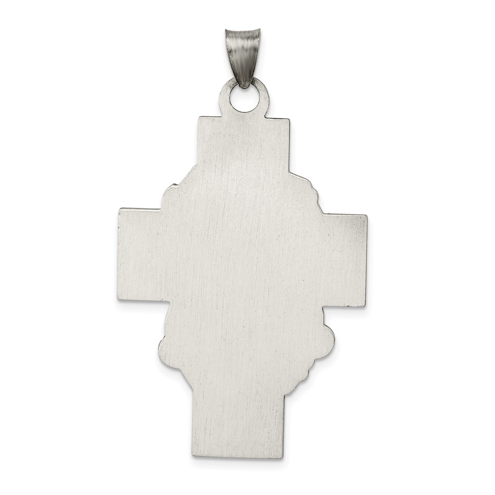 Sterling Silver Hollow Satin Antiqued Jesus Cross Medal
