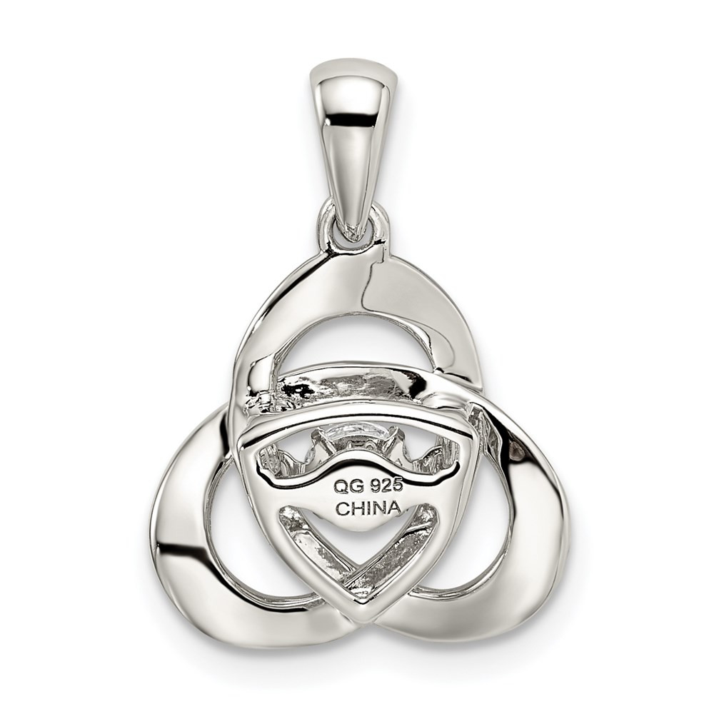 Sterling Silver Platinum-plated Vibrant Moving CZ Swarovski Zirconia Center Stone Trinity Pendant