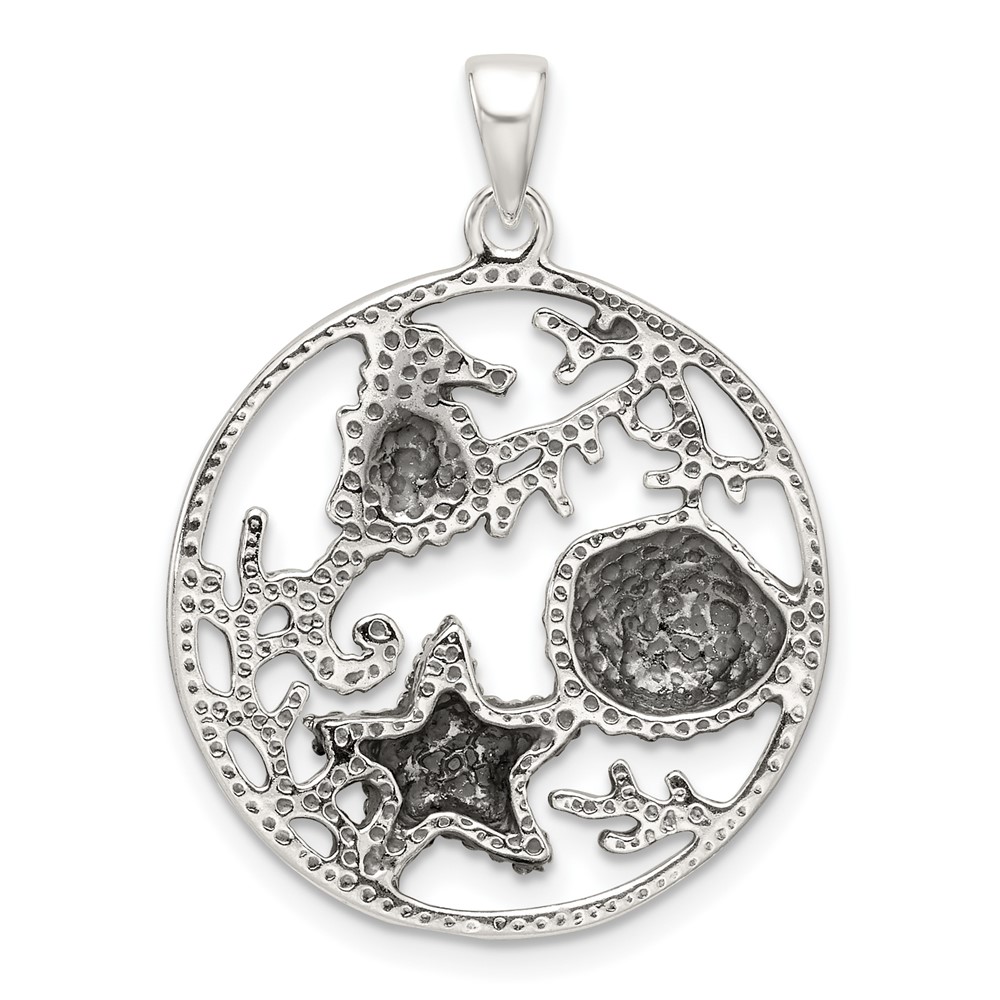 Sterling Silver Polished and Antiqued Sea Life Circle Pendant