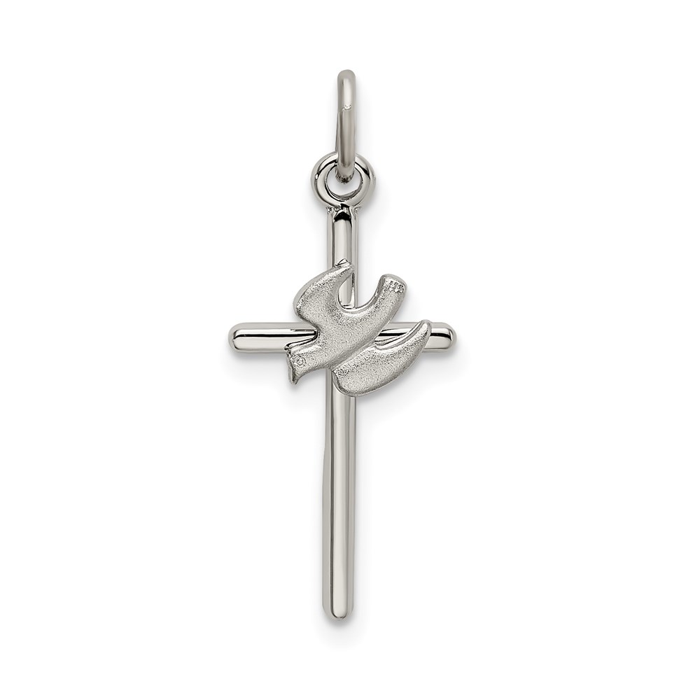 Sterling Silver Polished and Satin Dove Cross Pendant