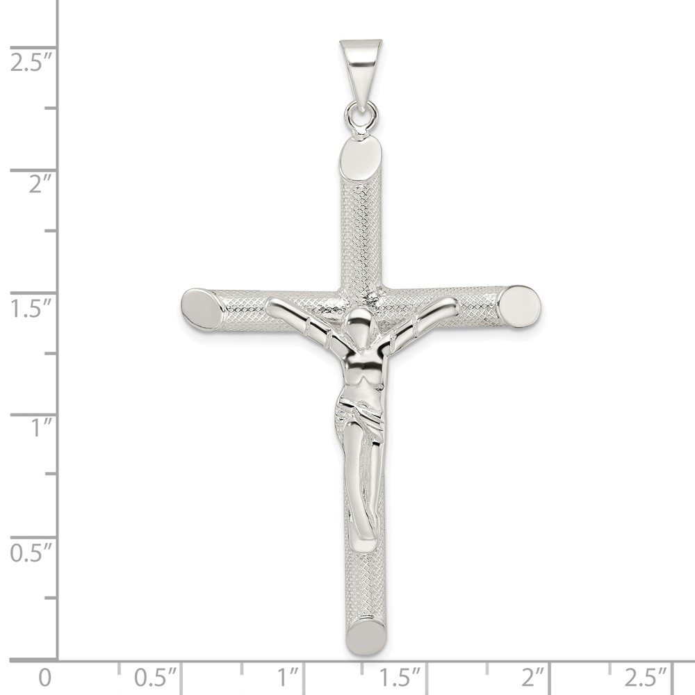 Sterling Silver Polished and Texture Tube Crucifix Cross Pendant