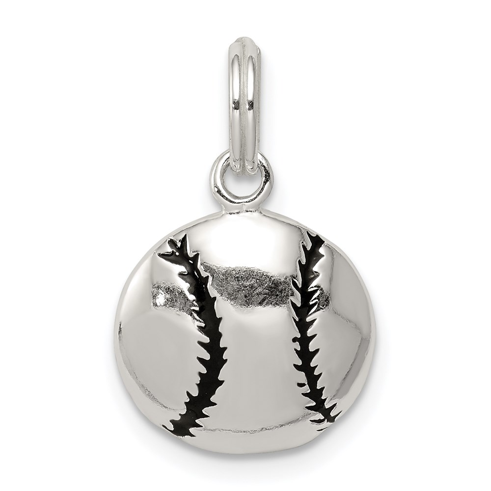 Sterling Silver Polished Enamel Baseball Pendant