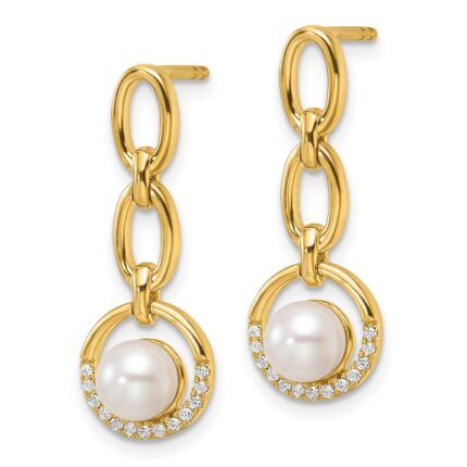 “14K White Gold Polished 1/15 carat Diamond and White Freshwater Cultured Pearl Dangle Post Earrings” has been added to your cart. View cart
