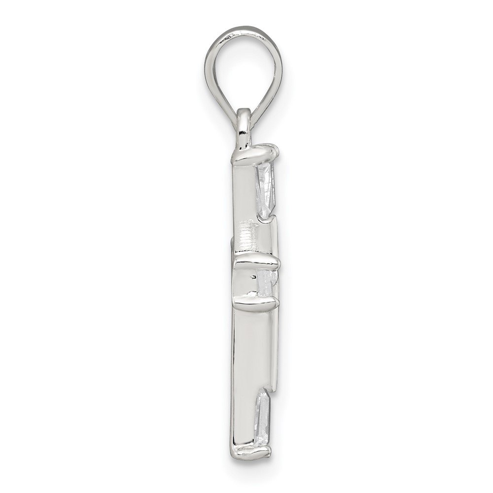 Sterling Silver Polished Tapered Baguette CZ Cross Pendant
