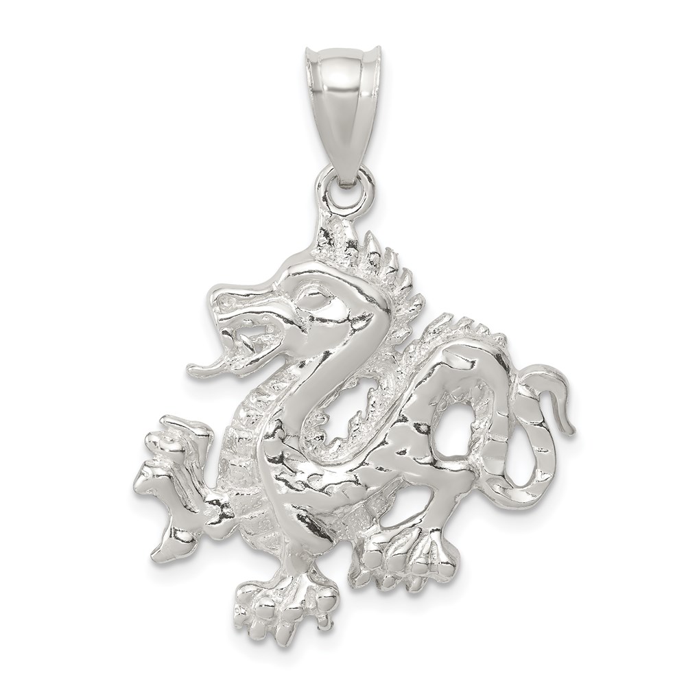 Sterling Silver Polished & Textured Chinese Dragon Pendant