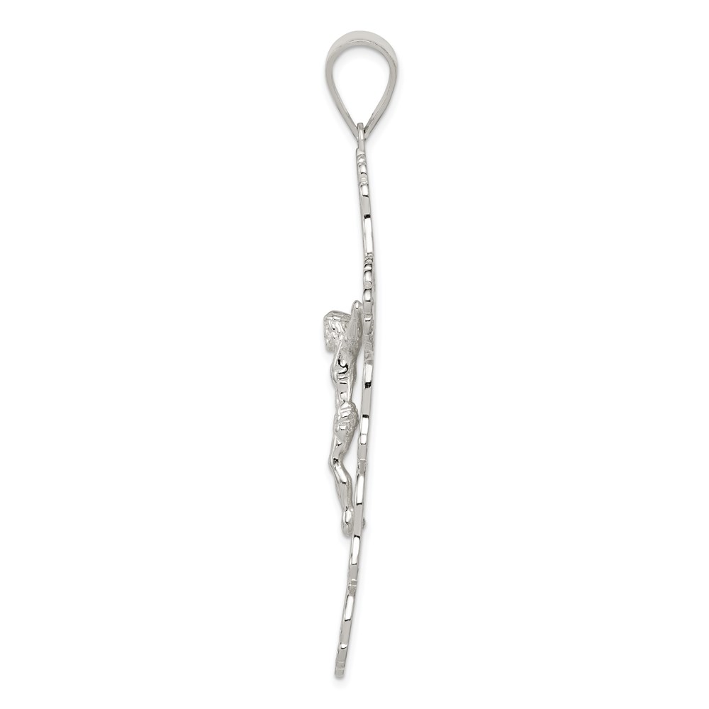 Sterling Silver Polished & Textured Large Floral Cross w/Jesus Pendant