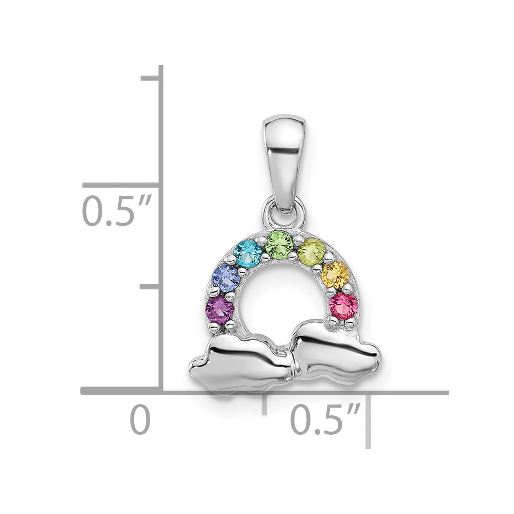 Sterling Silver Rhod-plated Crystal Rainbow & Clouds Children’s Pendant