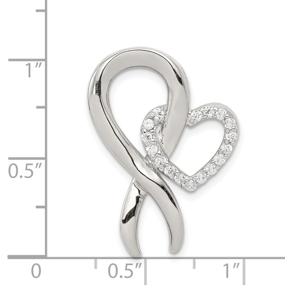 Sterling Silver Rhod-plated CZ Heart/Breast Cancer Ribbon Chain Slide