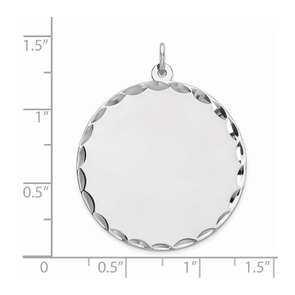 Sterling Silver Rhod-plated Eng. Rnd Polish Front/Satin Back Disc Charm