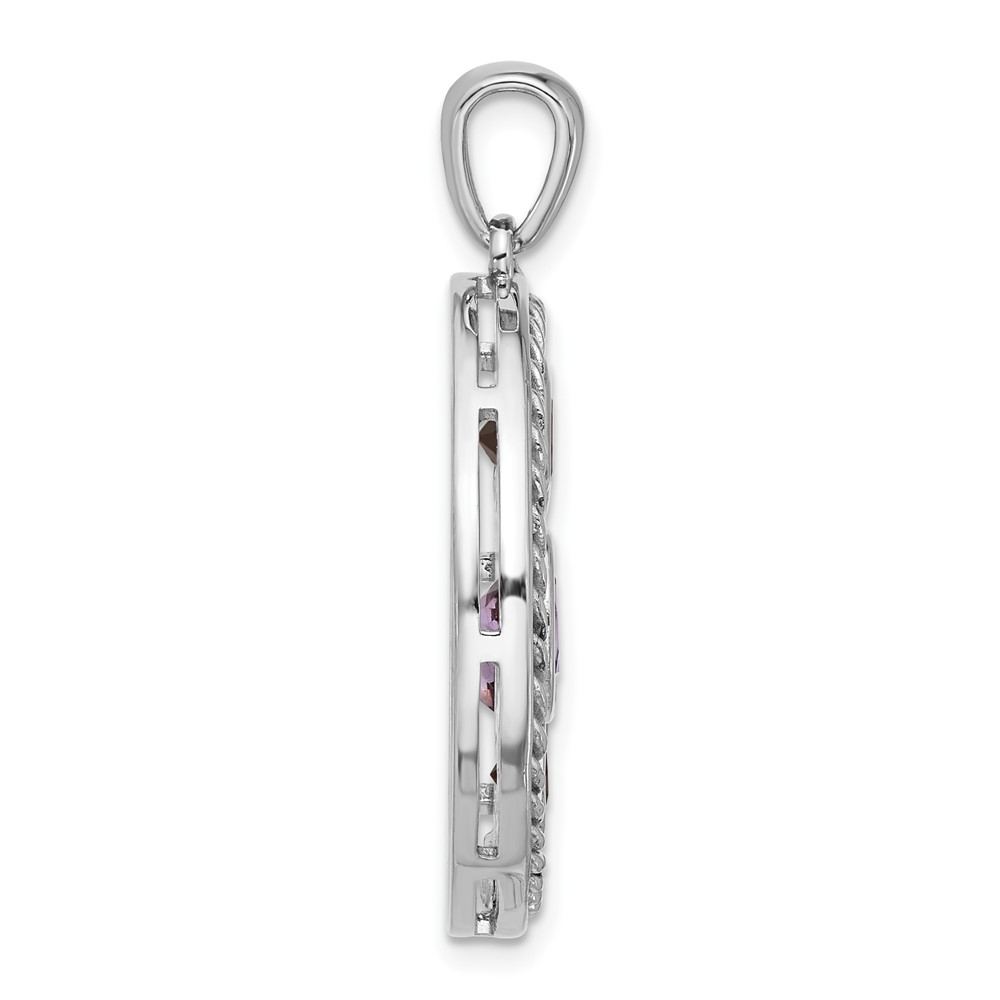 Sterling Silver Rhodium Amethyst Garnet and White Topaz Circle Pendant