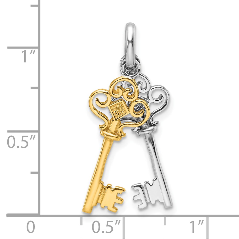 Sterling Silver Rhodium and Gold-tone 2 Piece Dangle Key Pendant