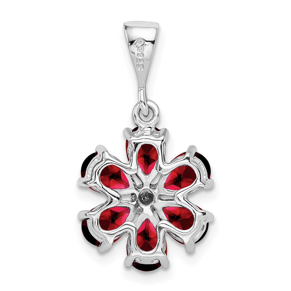 Sterling Silver Rhodium Garnet & Diamond Flower Pendant