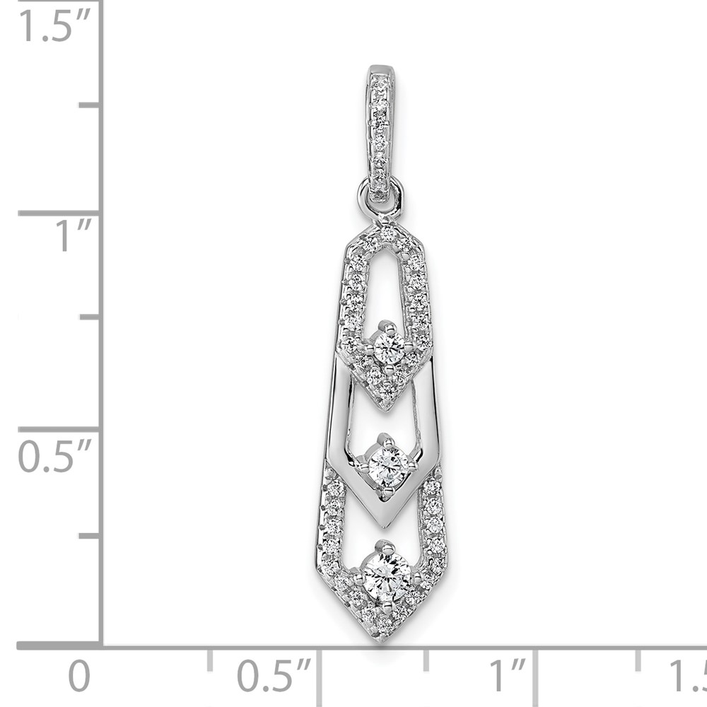 Sterling Silver Rhodium-plated 3-Stone CZ Pointed Pendant
