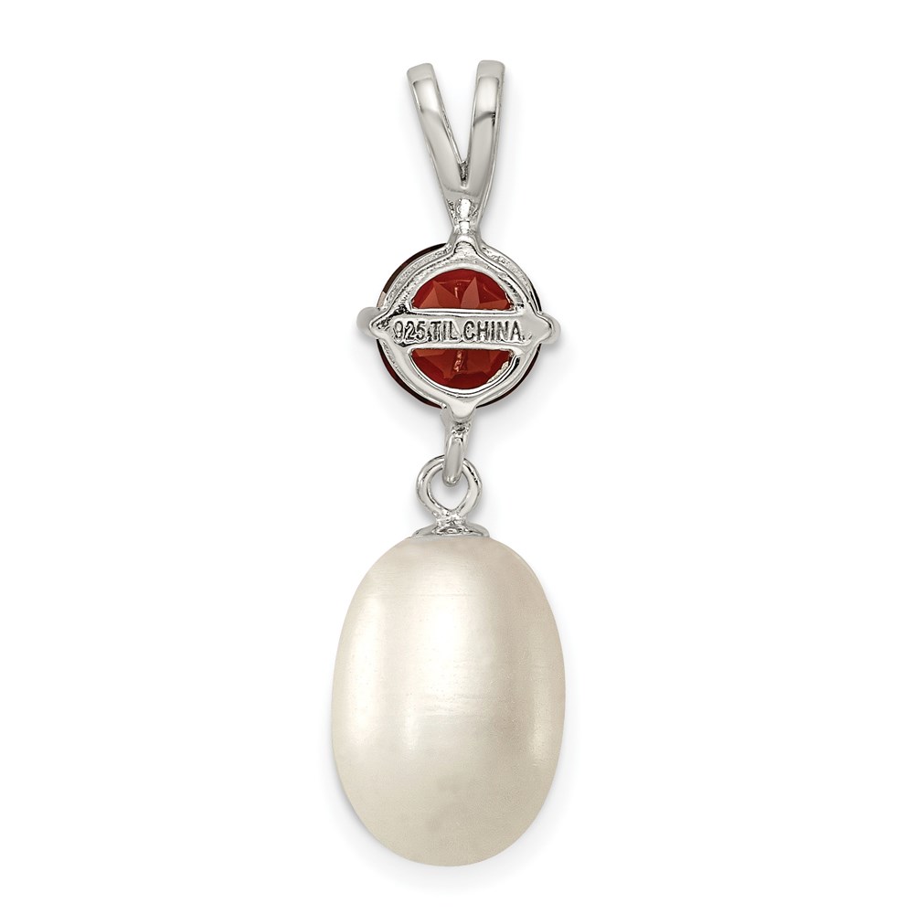 Sterling Silver Rhodium-plated 8-9mm White Teardrop Freshwater Cultured Pearl and 1.00GA Garnet Pendant