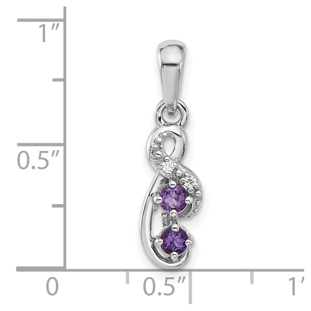 Sterling Silver Rhodium-plated Amethyst and CZ Swirl Pendant
