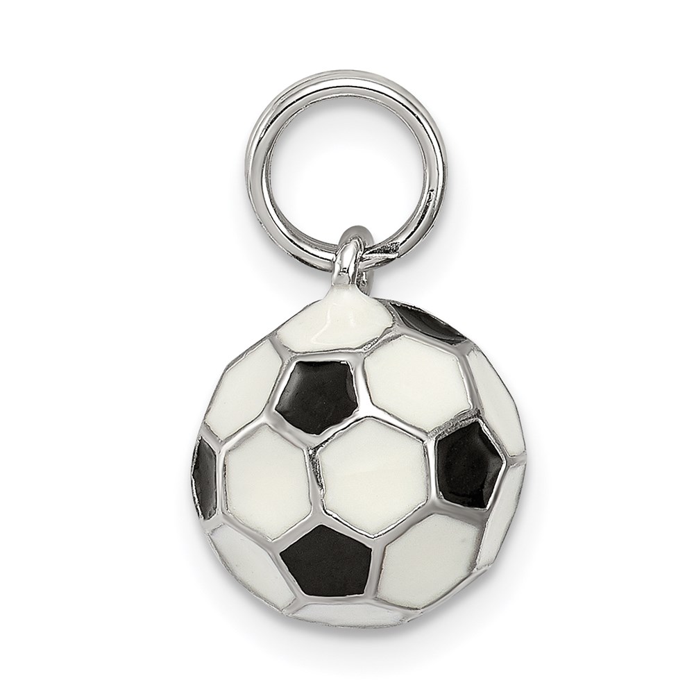 Sterling Silver Rhodium-plated and Enameled Soccer Ball Charm