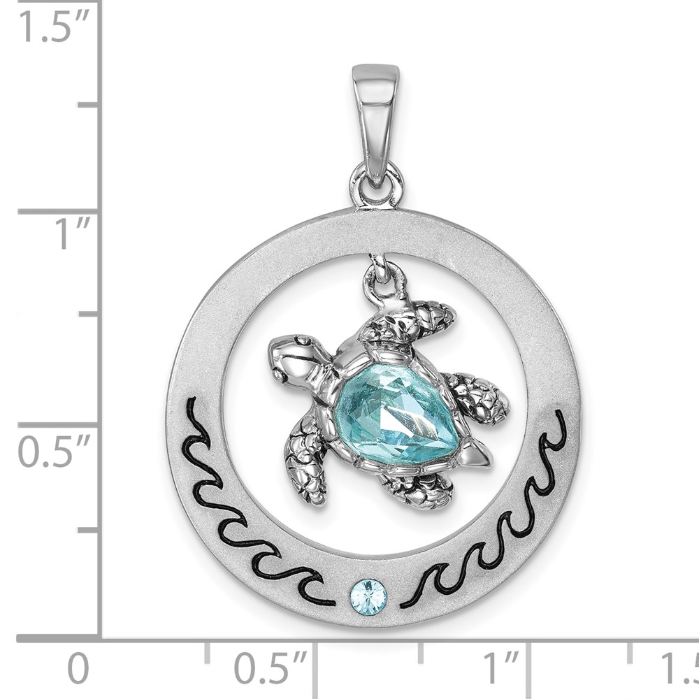 Be the first to review “Sterling Silver Rhodium-plated Antiqued Round Moveable Crystal Turtle Pendant” Cancel reply