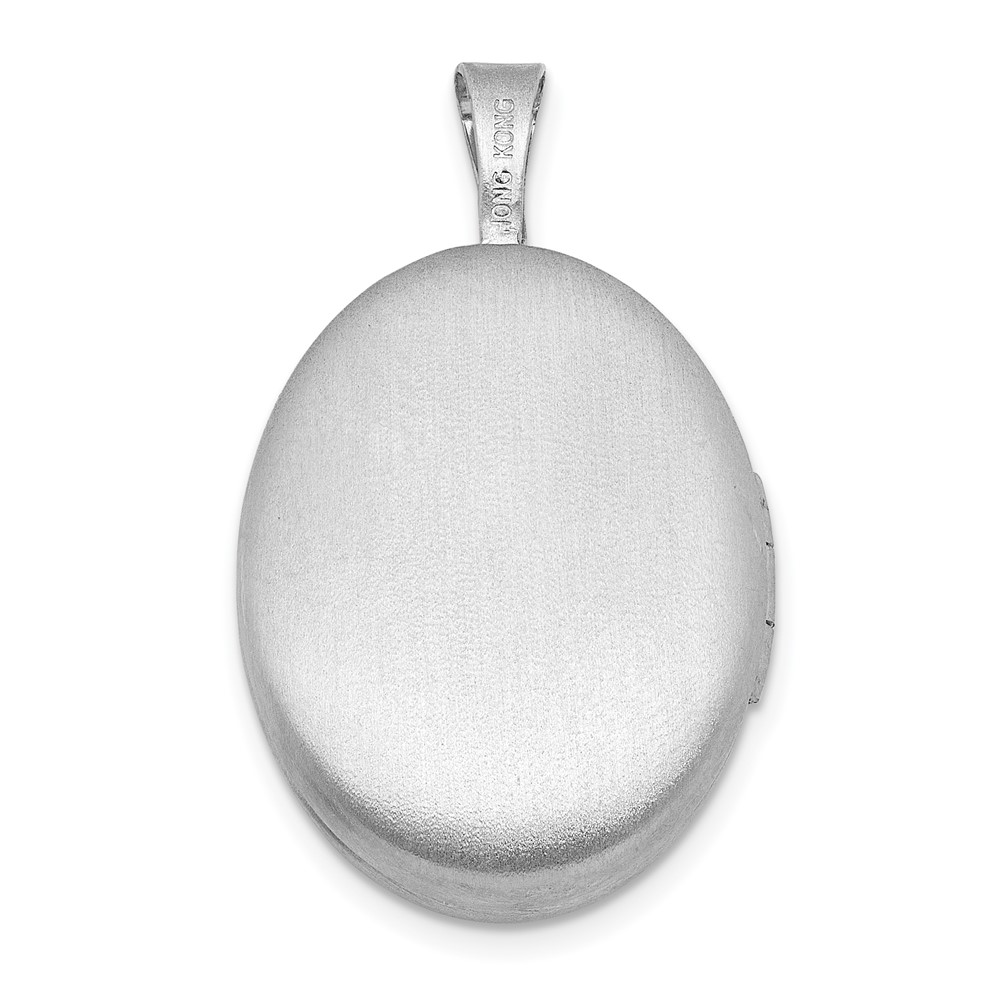 Sterling Silver Rhodium-plated Brushed 1/20 carat Diamond Engraved Cross 16mm Oval Locket