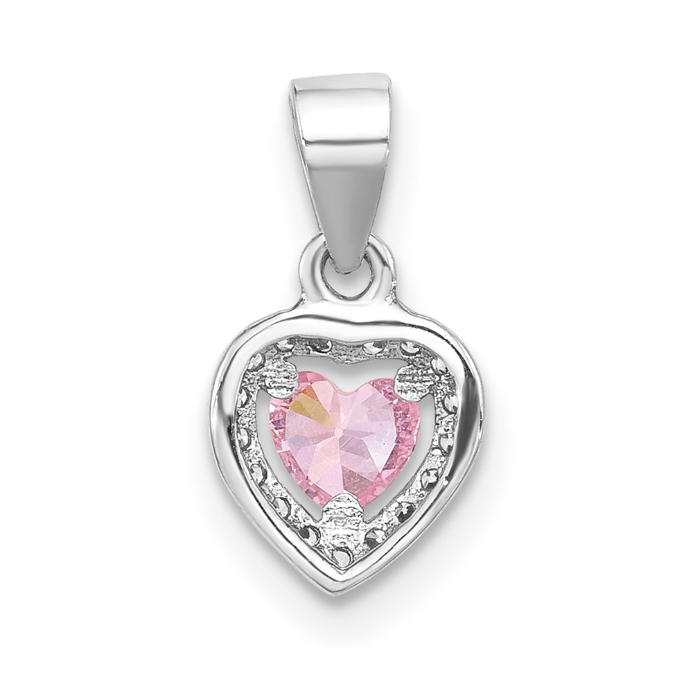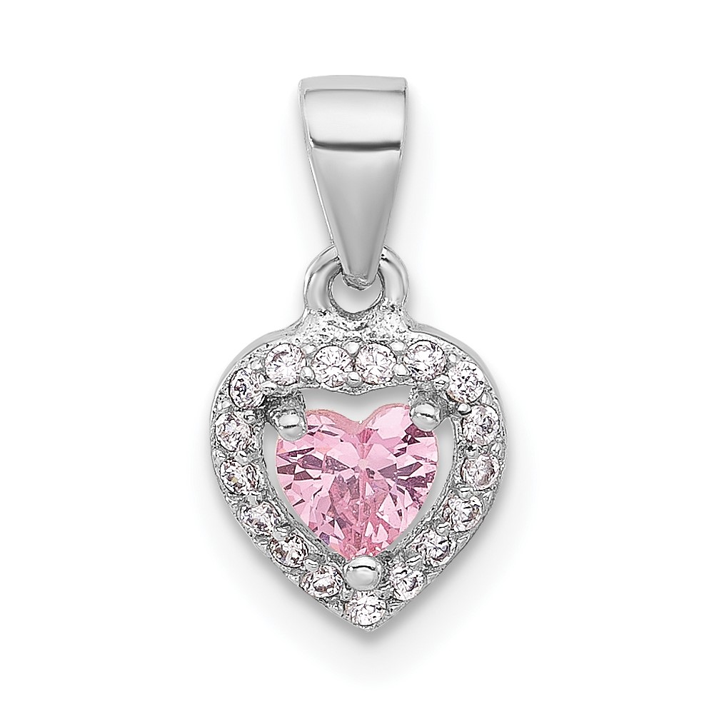 Sterling Silver Rhodium-plated Clear and Pink CZ Heart Pendant