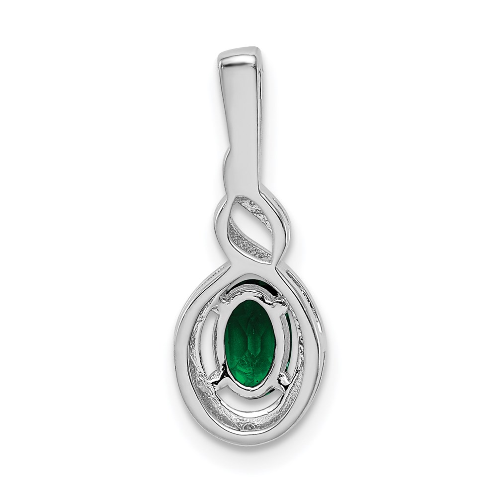 Sterling Silver Rhodium-plated Created Emerald & Diam. Pendant