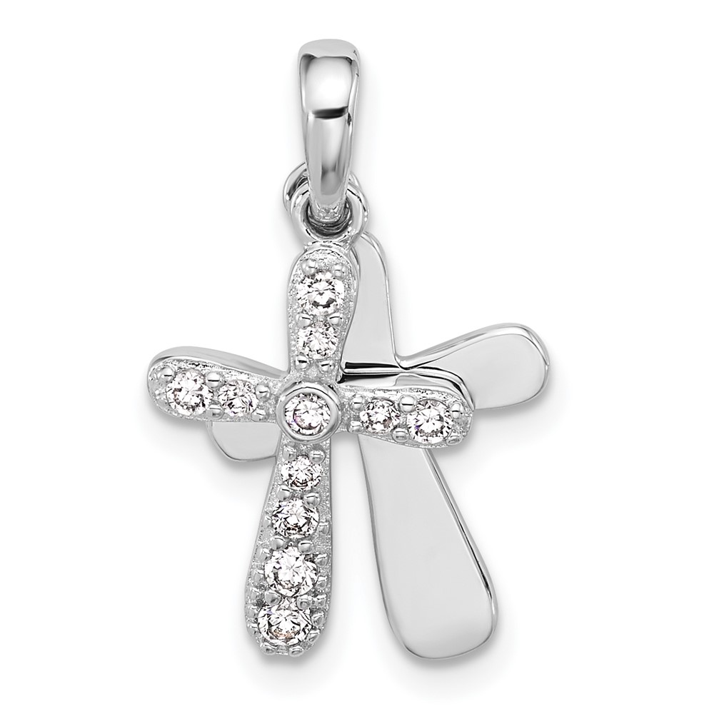 Sterling Silver Rhodium-plated CZ 2 Piece Cross Pendant