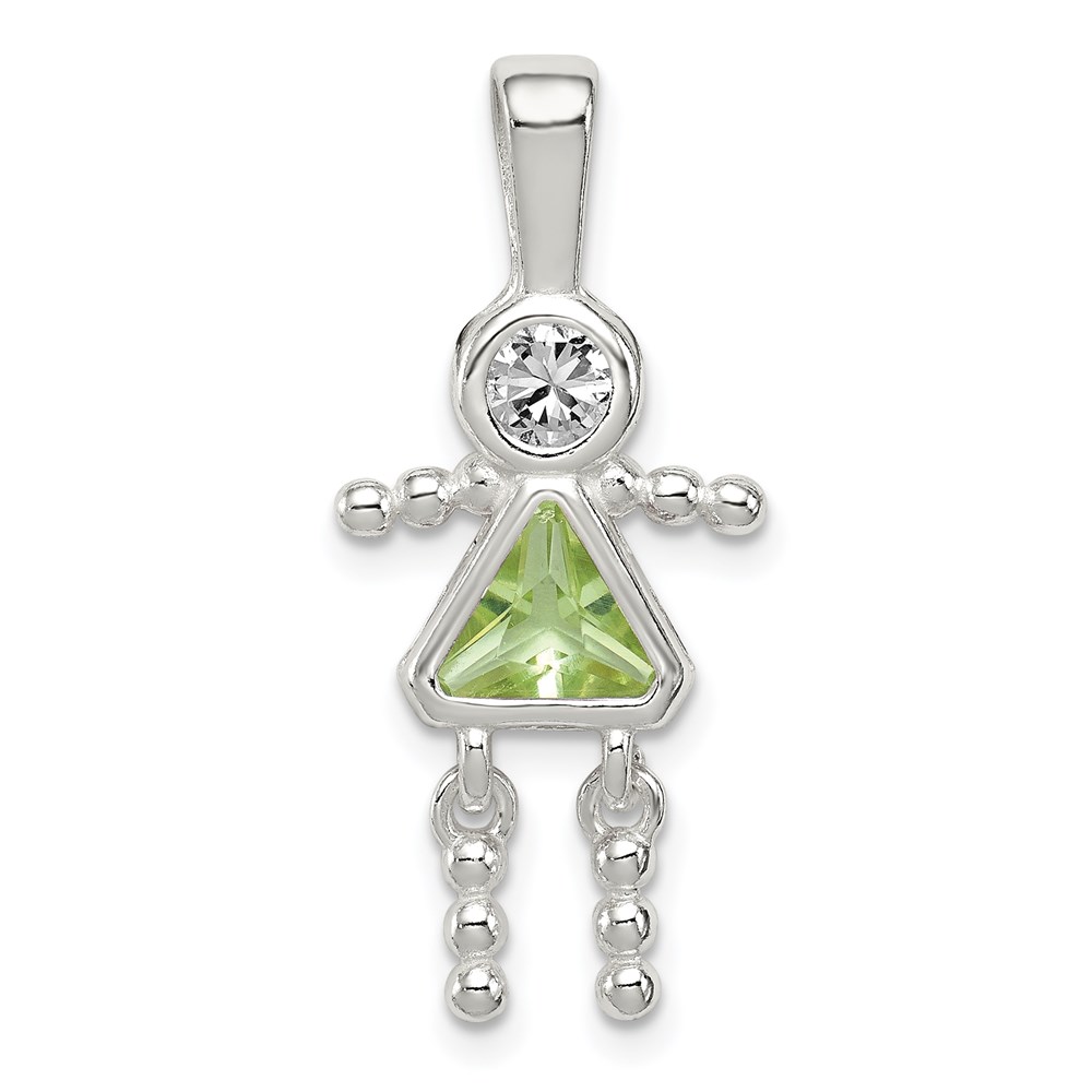 Sterling Silver Rhodium-plated CZ & August Glass Girl Pendant