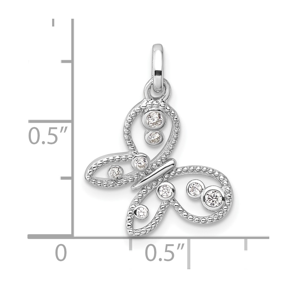 Sterling Silver Rhodium-plated CZ Butterfly Pendant