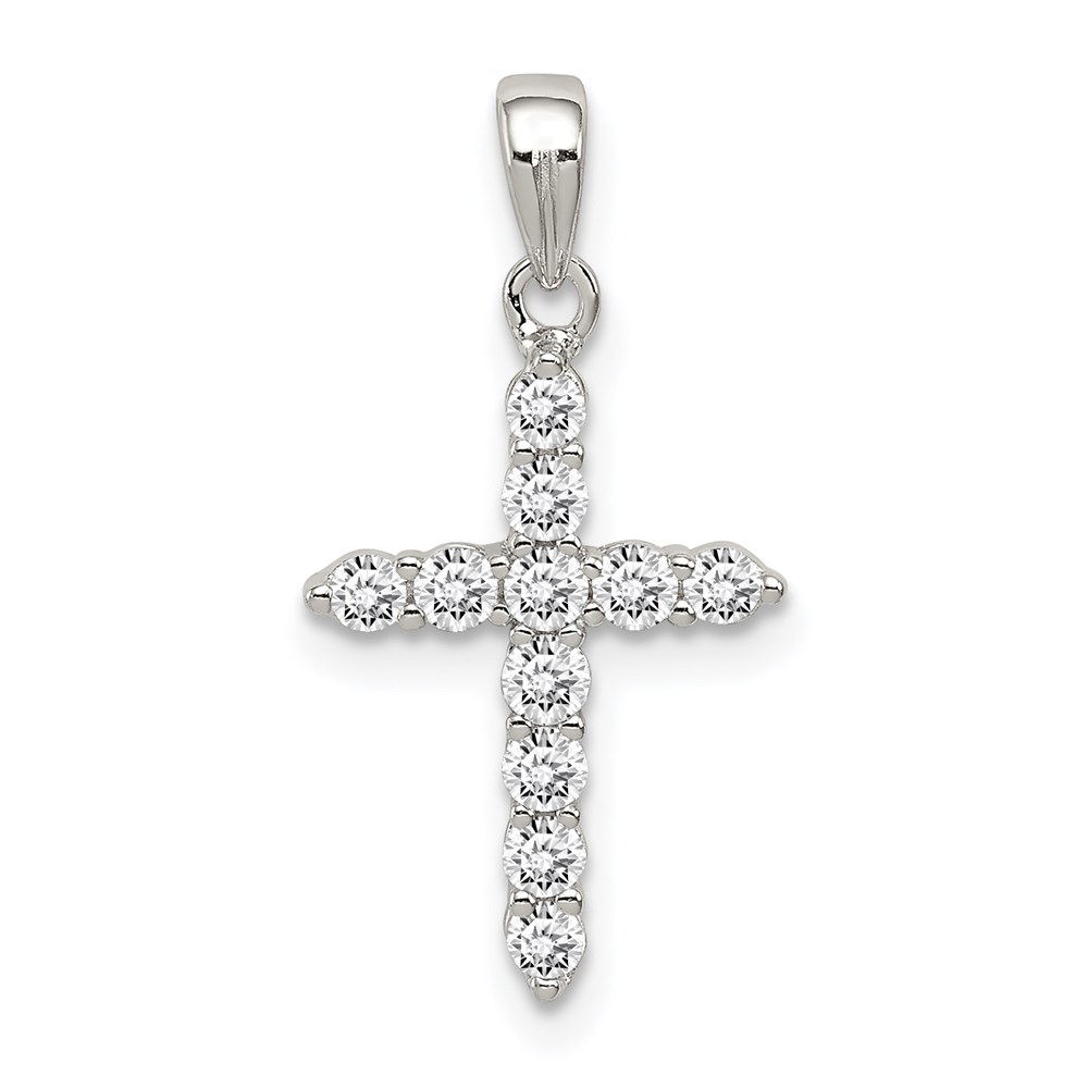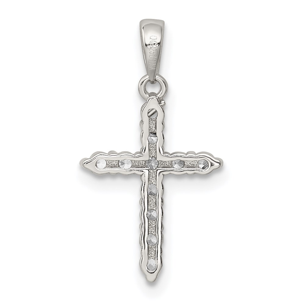 Sterling Silver Rhodium-plated CZ Cross Pendant