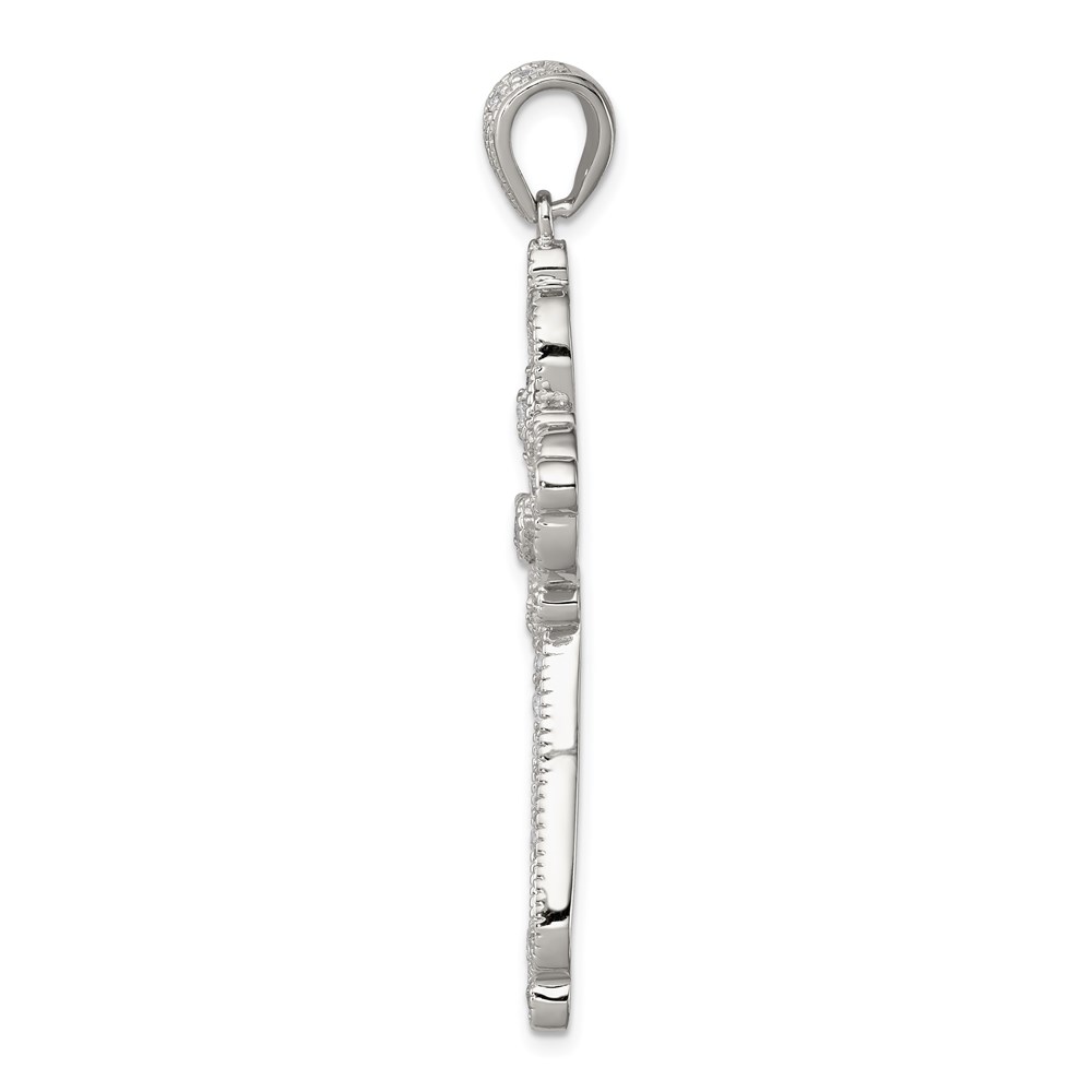 Sterling Silver Rhodium-plated CZ Filigree Cross Pendant