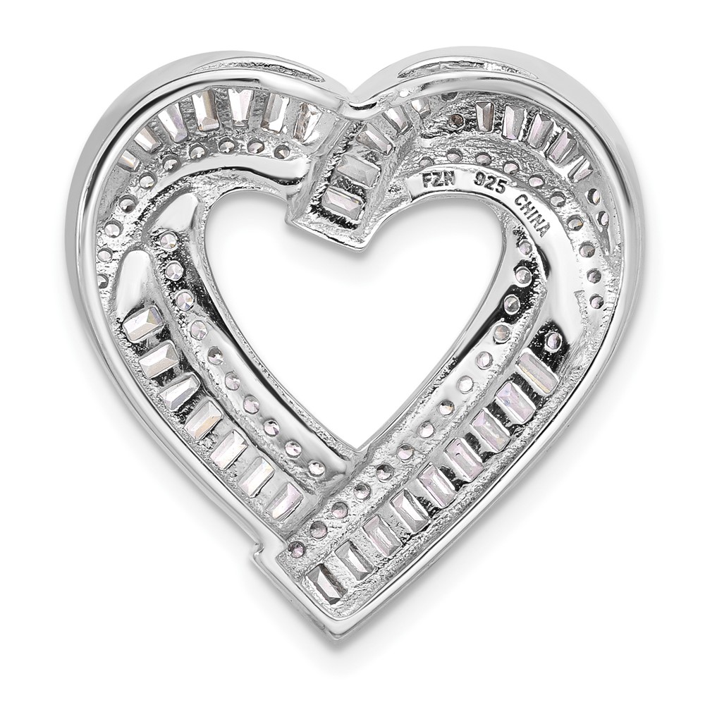 Sterling Silver Rhodium-plated CZ Heart Chain Slide Pendant