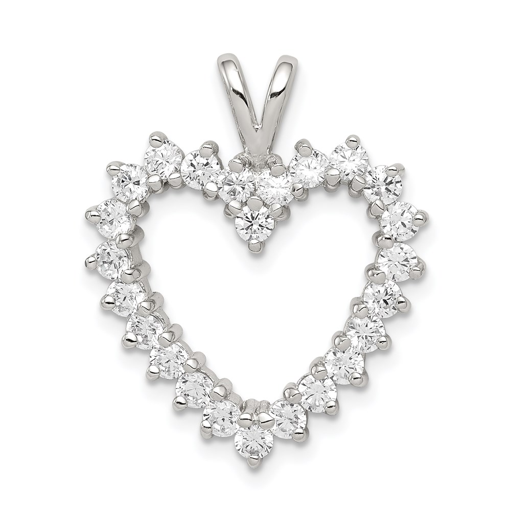 Sterling Silver Rhodium-plated CZ Heart Pendant
