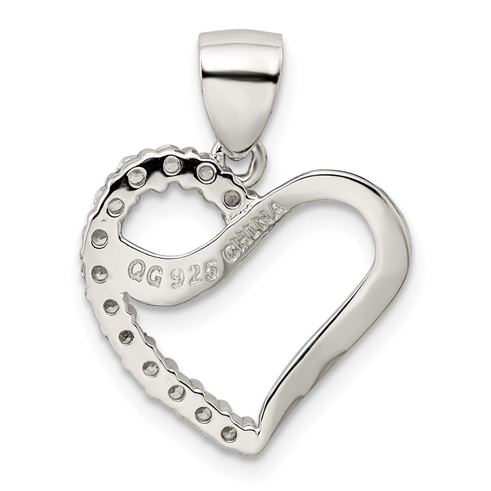 Sterling Silver Rhodium-plated CZ Heart Pendant